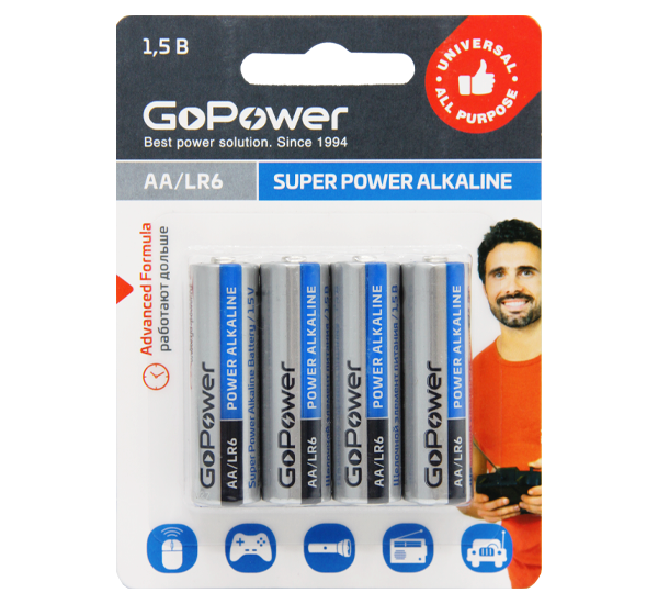 Батарейка GoPower Alkaline BL-4 (LR6) (пальчик) АА