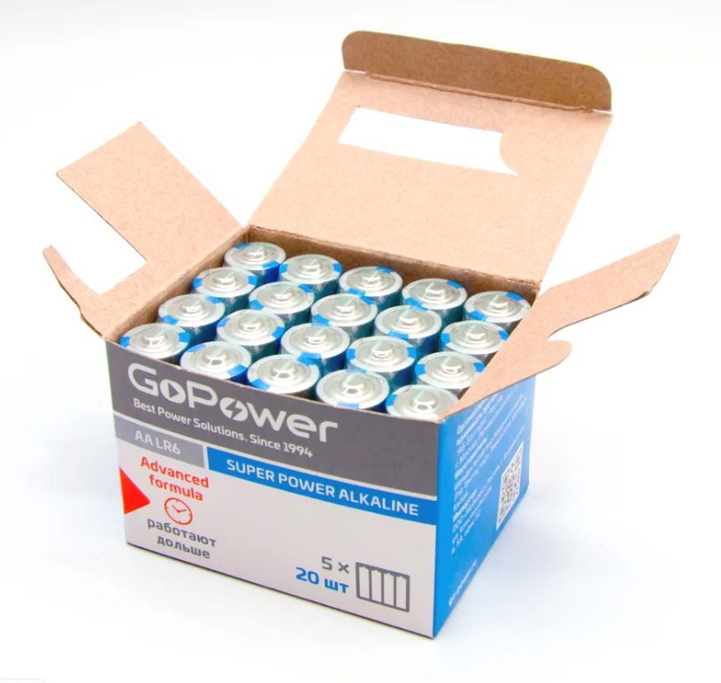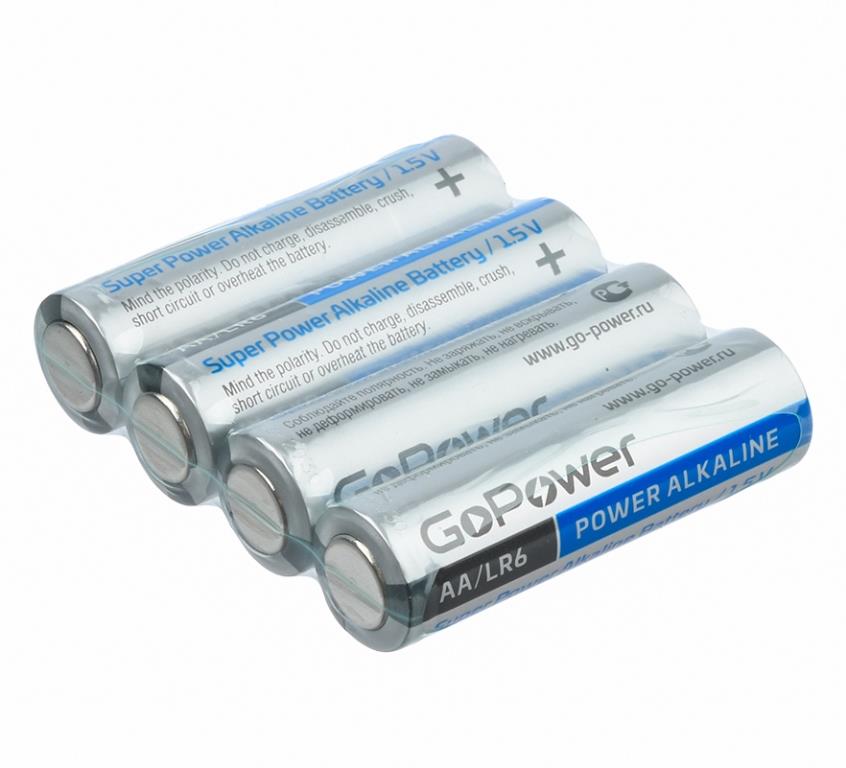 Батарейка GoPower Alkaline Shrink-4 BOX-20 (LR6) (пальчик) АА