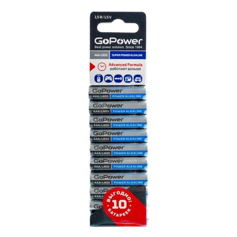 Батарейка GoPower Alkaline BL-10 (LR03) (мизинец) ААА
