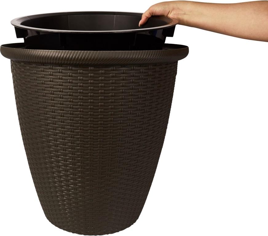 Кашпо напольное "RATTAN" Д-185мм 3л с внутренним горшком 1,5л Горький шоколад