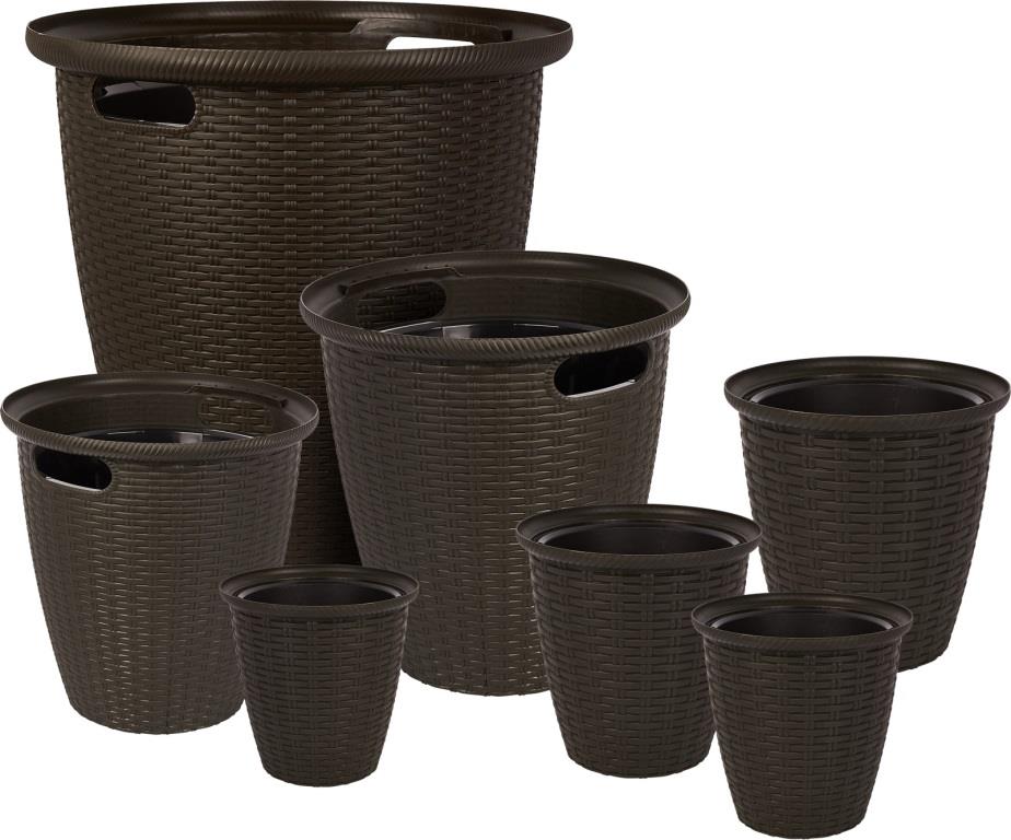 Кашпо напольное "RATTAN" Д-210мм 4,5л с внутренним горшком 2,25л Горький шоколад