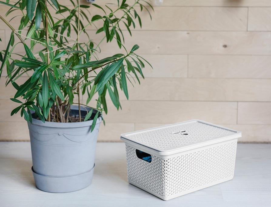 Корзина универсальная NATURE 15л, (398х273х177мм) с крышкой светло-серый