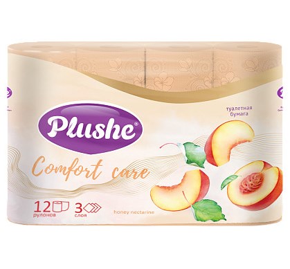 Бумага туалетная PLUSHE COMFORT CARE набор-12шт 3-х слойная ЦВЕТНАЯ (аромат в ассортименте)