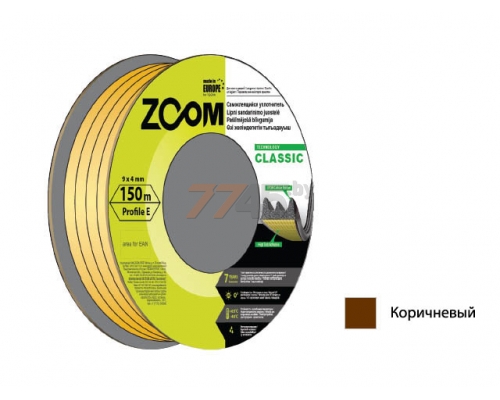 Уплотнитель ZOOM, оконно-дверной, профиль E, 150 м/бухта, КОРИЧНЕВЫЙ