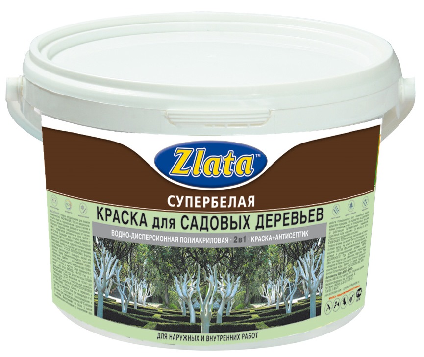 Краска для садовых деревьев ZLATA 6,5 кг с биодобавками от плесени и грибка