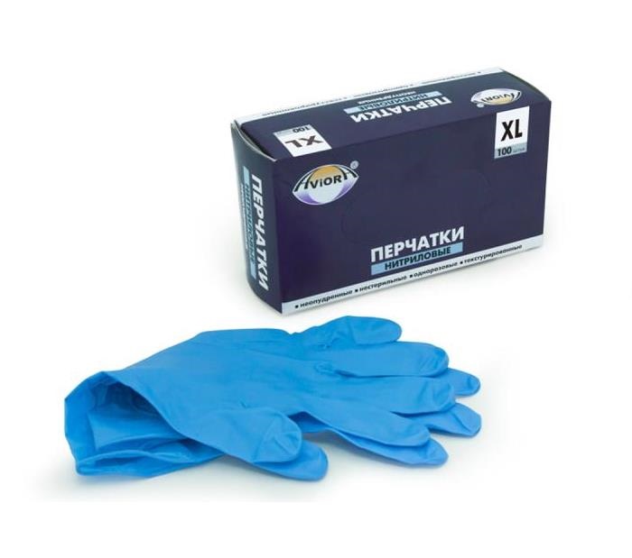 Перчатки НИТРИЛОВЫЕ, неопудренные, размер XL (100шт) AVIORA
