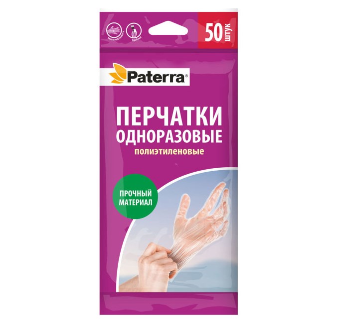 Перчатки одноразовые полиэтиленовые (50 шт/уп) Paterra