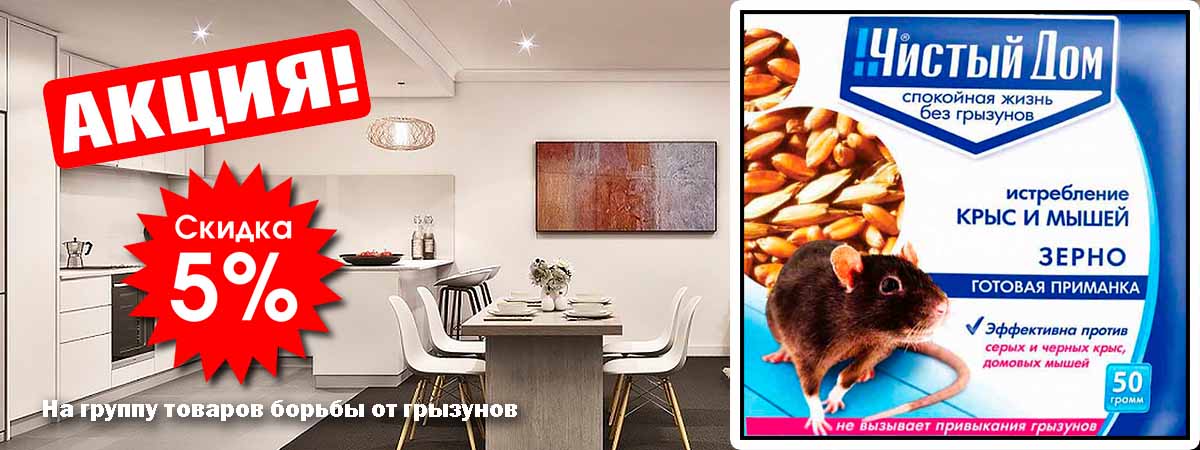 До конца октября действует скидка 5% на весь товар категории - ОТ МЫШЕЙ, КРЫС И ДРУГИХ ВРЕДИТЕЛЕЙ